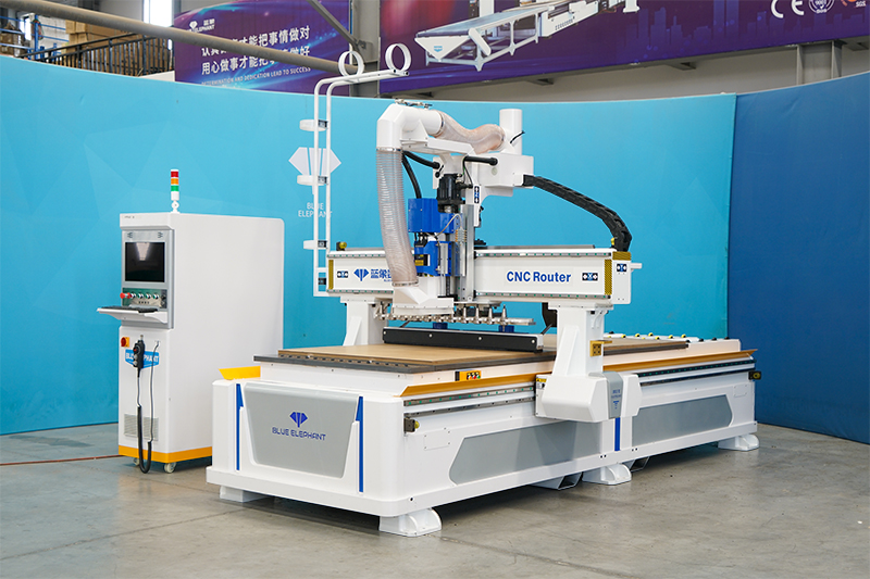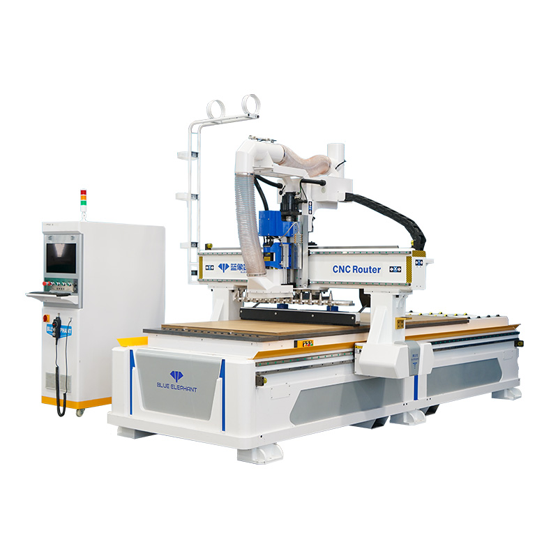 直排自動(dòng)換刀數(shù)控開(kāi)料機(jī)是一款能夠解決各種木工加工工藝的數(shù)控開(kāi)料銑型加工設(shè)備,機(jī)器配備大功率自動(dòng)換刀主軸,搭配快速直排換刀刀庫(kù),既可實(shí)現(xiàn)定制櫥柜、衣柜的生產(chǎn)加工,又可以實(shí)現(xiàn)吸塑門(mén)板造型加工。